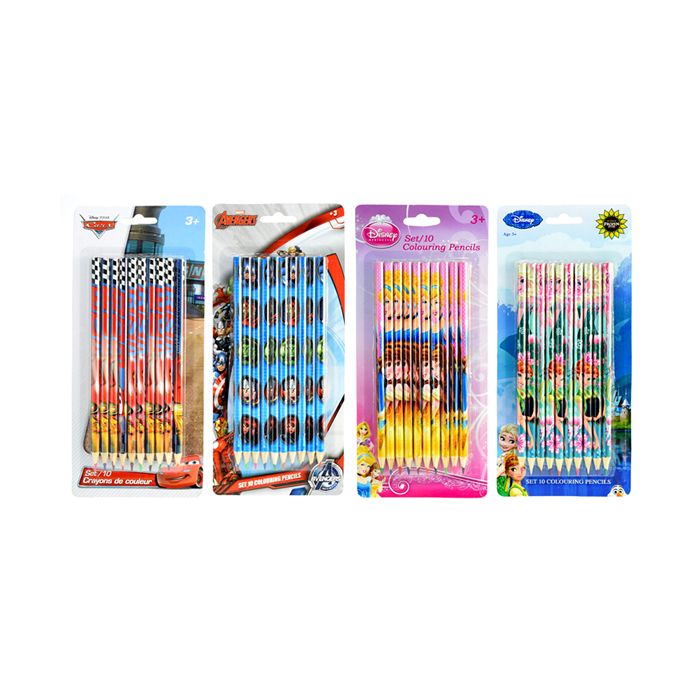 Omschrijving | Voor alle kids die gek zijn op kleuren, maar ook een liefhebber zijn van Disney-figuren is nu dit pakje met 10 kleurpotloden met Disney print. Er zijn 4 varianten: Avengers, Princess, Cars en Frozen. |